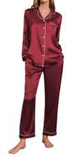 Ekouaer Silk Satin Pajamas Womens Long Sleeve Pj Set Soft Button Down 2 Piece Sleepwear Loungewear (WineXL)