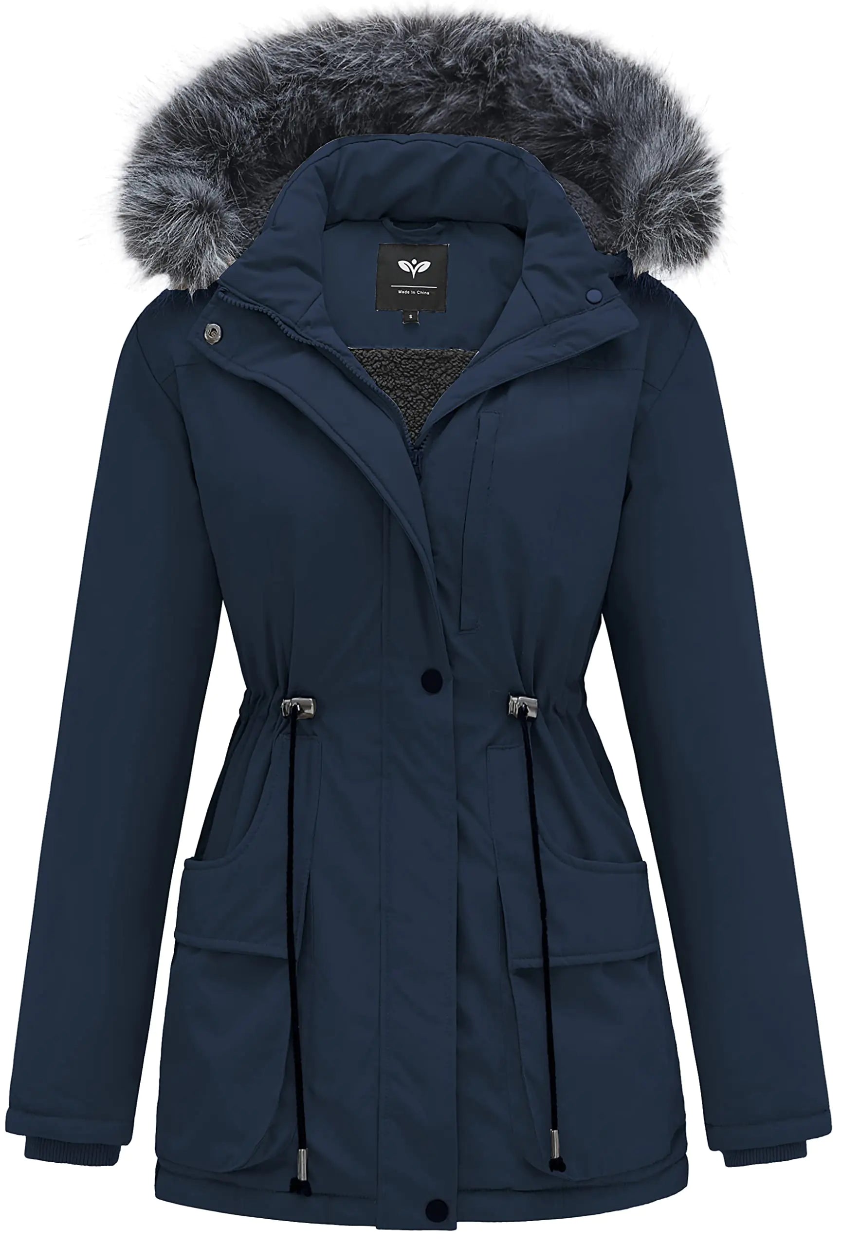 GGleaf Womens Warm Puffer Jacket Parka Winter Coats Thicken Hooded Outwear with Fur Navy(Fleece Inner) Small