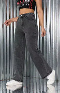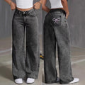 Elevate your casual style with these high-waisted, straight-leg embroidered jeans for women. Made from inelastic denim with bow embroidery, these loose-fit trousers offer a trendy streetwear look and comfortable fit. Available in sizes S-2XL and classic black.