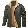 HOTYD Fleece Jacket Men Winter Jackets for Men Sherpa Lined Jacket Warm Jackets Mens Lapel Coats Western Cowboy Jackets Stand Collar Thick Jackets Casual Trucker Jackets Military Jackets Green XL