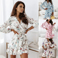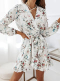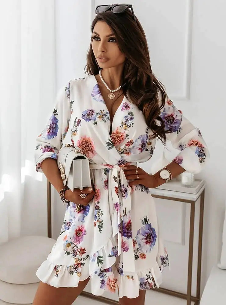 Embrace your style with our stunning long-sleeve irregular ruffle print dress! This fashionable piece is perfect for any occasion, offering a unique blend of elegance and comfort. Made from high-quality polyester fiber, the dress features a V-neck design and conventional sleeves, providing a flattering silhouette that is both feminine and chic.