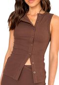 KMBANGI Women Button Down Vest Ribbed Summer Tank Tops Button Up Open Front Shirts Sleeveless Slim Fit Dressy Top(Asymmetrical BrownM)