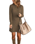 Date night outfit for women featuring a mock neck long sleeves fit and flare dress for women with bodycon fitted top and ribbed waisted to created a-line silhouette Our knit dresses for women fall are made with soft and lightweight fabric for limitless comfort all season long These sweater dresses for women knee length are perfect for wear to wedding as guest night out party evening going out business casual work and office etc Stun in these warm dresses for winter women featured in a staple and ribbed knit fabrication designed to add dimension to any look