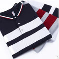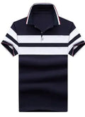 Men's Short Sleeve Striped Polo Shirt for Summer