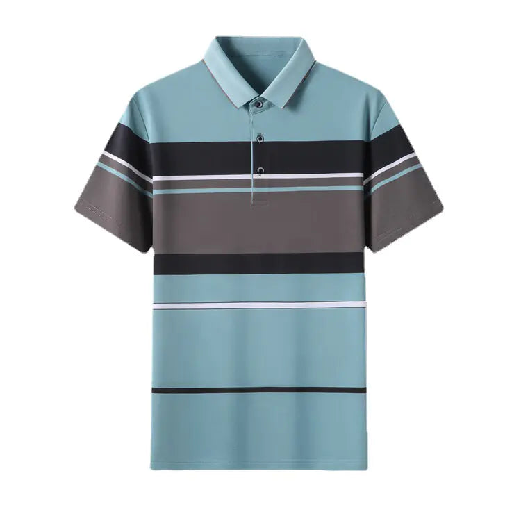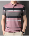 Men's Summer Striped Polo Shirt - Loose Fit Cotton