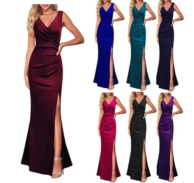 Slim Fit Spaghetti Strap Split Maxi Dress