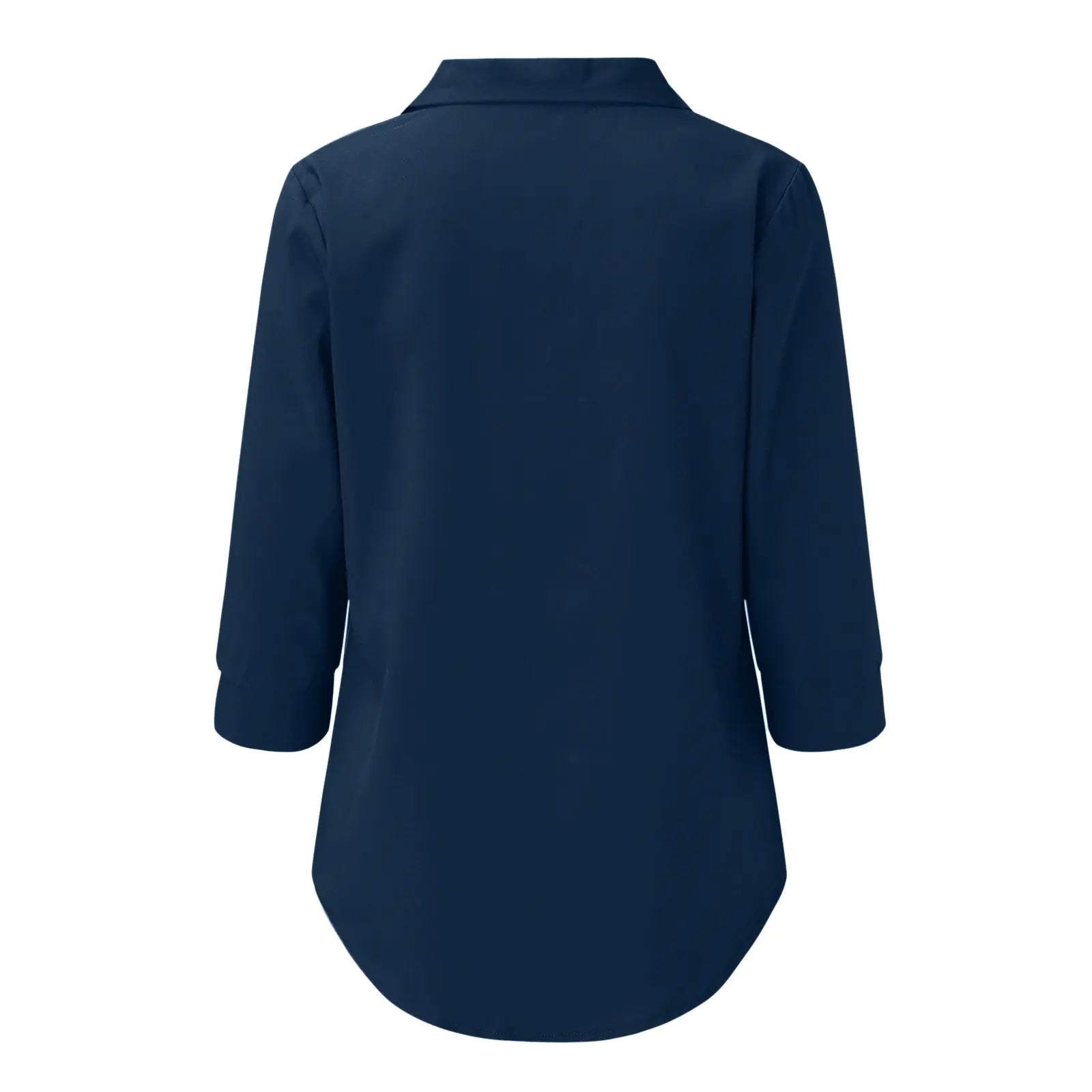 The design features a round neck and three-quarter sleeves, striking the perfect balance between casual and elegant. The solid pattern makes it easy to pair with your favorite jeans, shorts, or skirts, allowing for endless styling options.