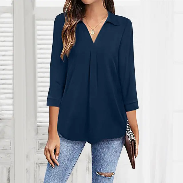 Spring Summer Women's V-Neck Loose Blouse Shirt