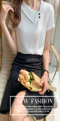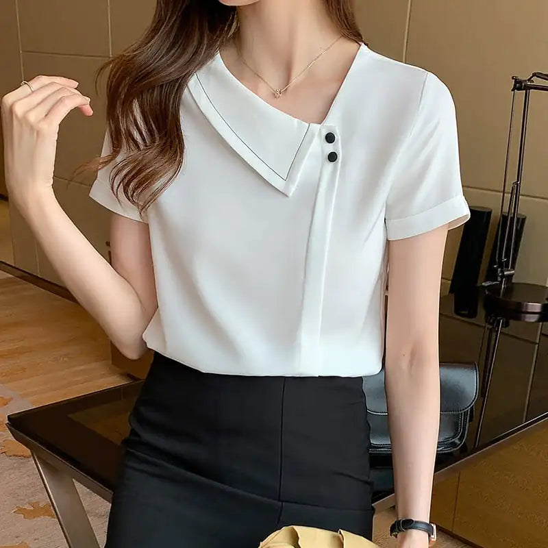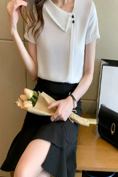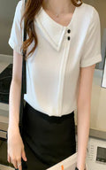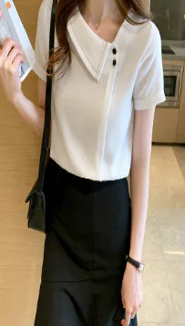 Featuring a plain pattern and a short sleeve design, this top is ideal for layering or wearing on its own. The pullover closure ensures easy wear, while the chic hedging style keeps you looking polished and put-together.